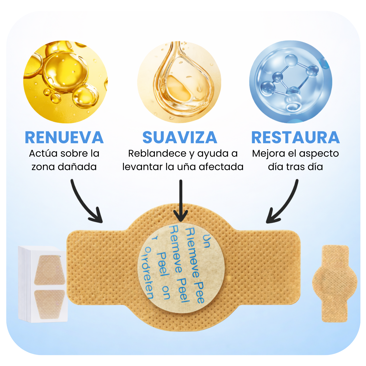 Ayuda a reblandecer la uña engrosada y a mejorar su textura. Facilita que los activos del parche actúen mejor sobre la zona afectada, haciendo que la uña se vea más prolija y cuidada con el uso constante.