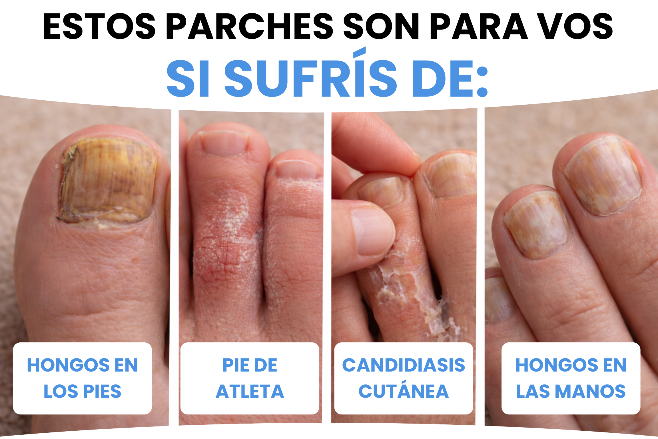 Pegalo directo sobre la uña afectada, dejando el centro del parche apoyado justo donde está el hongo.